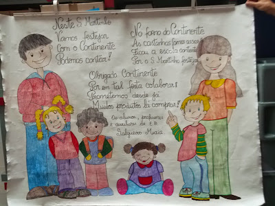 A nossa escola solicitou através do Agrupamento a colaboração do Supermercado "Modelo Continente" para poder assar as castanhas para celebrar o dia de S. Martinho na hora do lanche. O director da loja acedeu ao pedido com muito gosto.