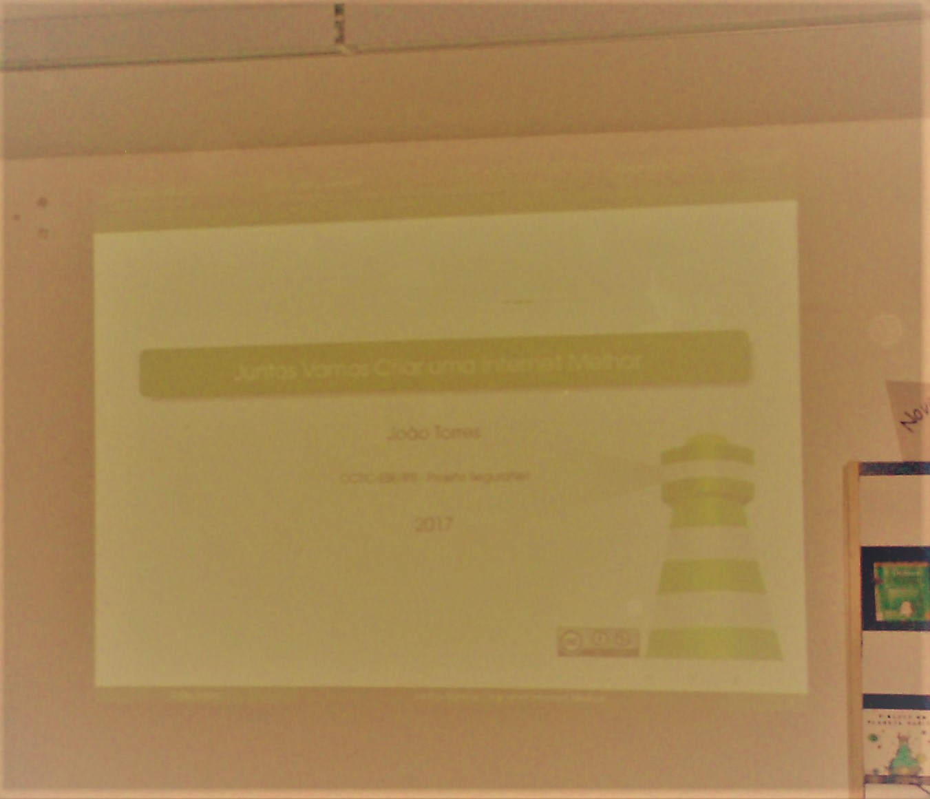 O Professor João Torres aceitou o convite e veio à Biblioteca Escolar da E. B. Salgueiro Maia realizar uma sessão sobre Segurança na Internet a que apelidou "Todos juntos vamos fazer uma Internet melhor".
